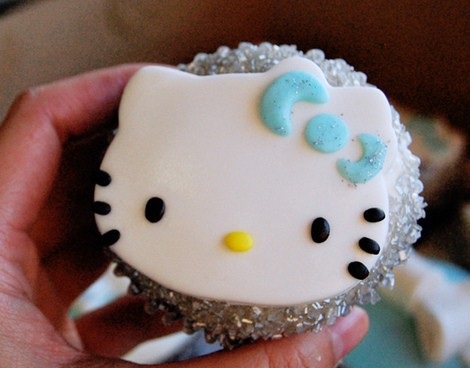 Cupcakes de Hello Kitty con virutas de brillo